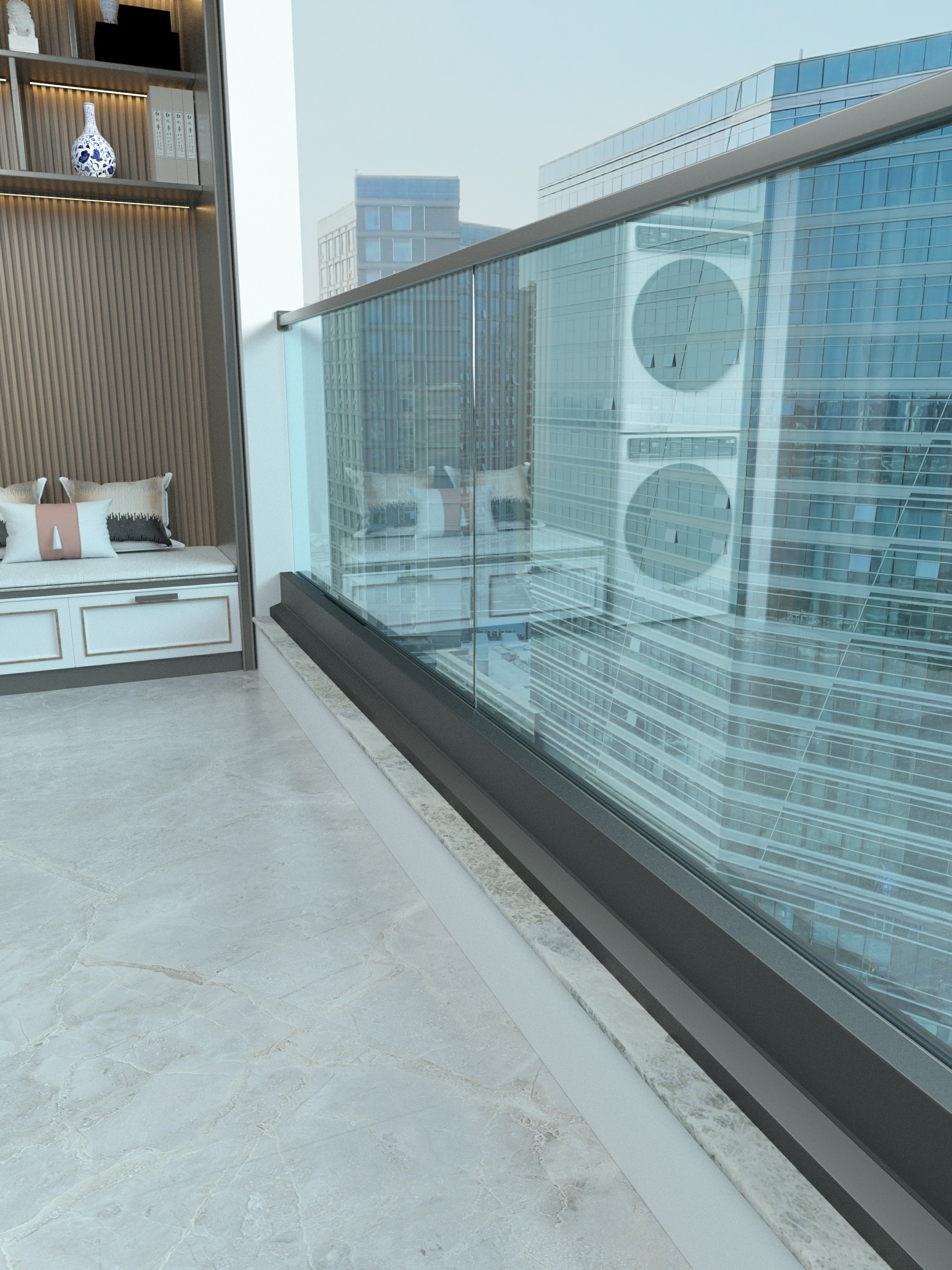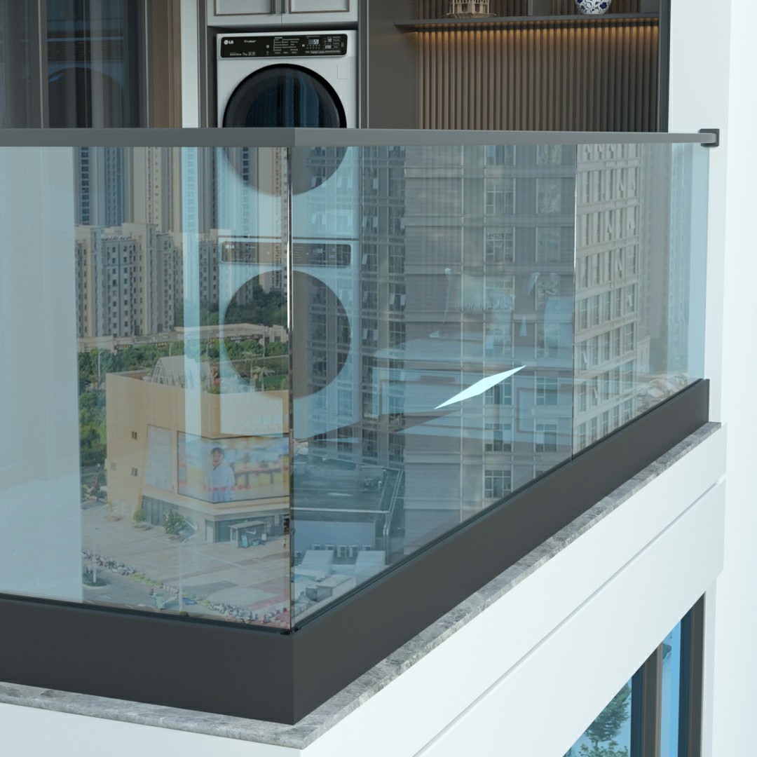 外露铝槽现代设计栏杆铝玻璃栏杆无框玻璃阳台护栏
