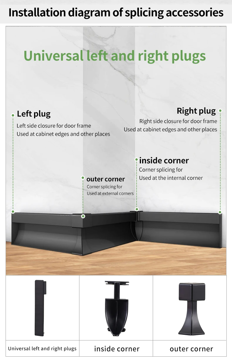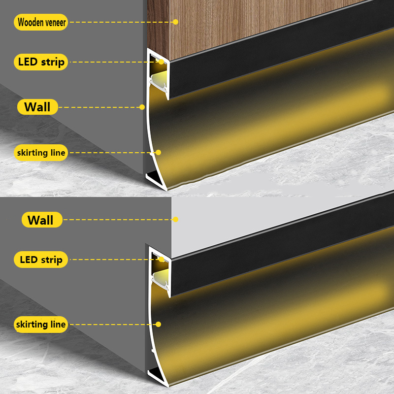 热销铝合金踢脚板配Led灯室内装饰工程地板配件8cm